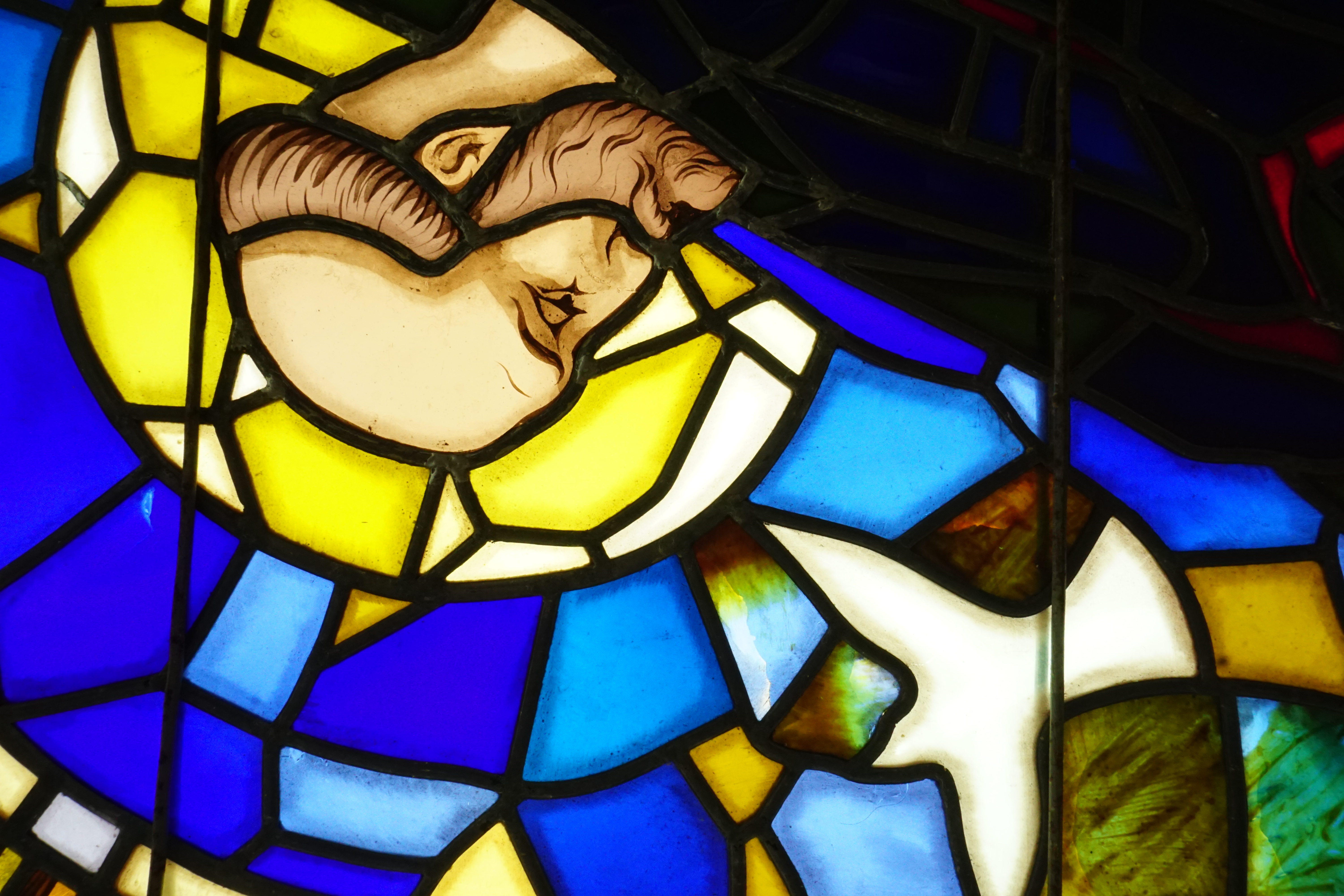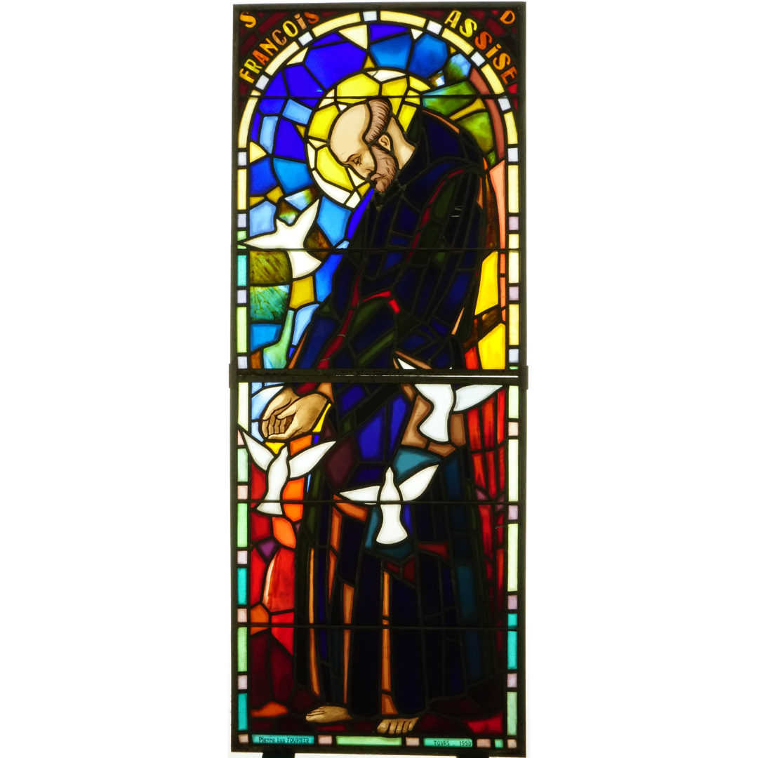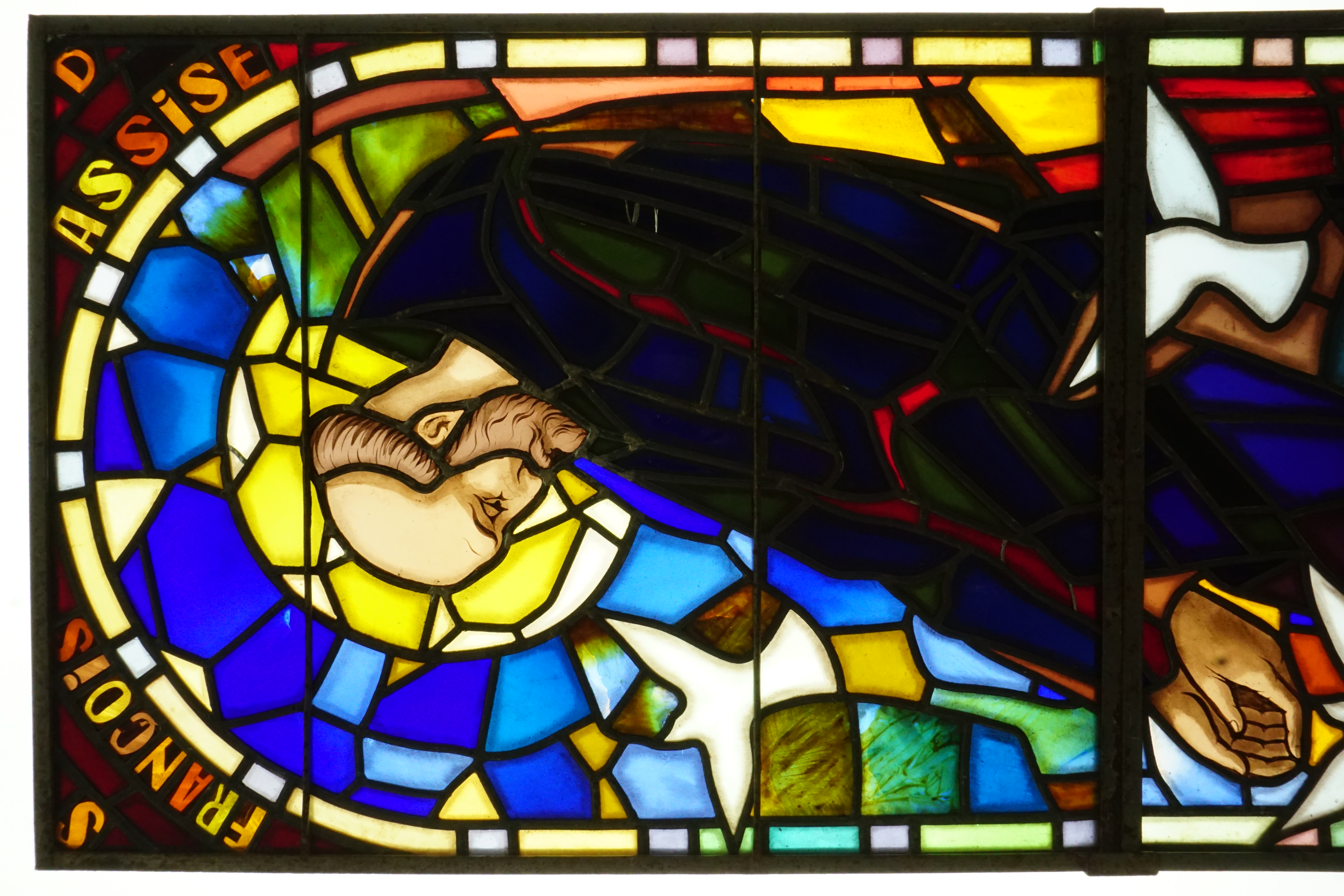 Vitrail de Saint François d’Assise faisant un sermon aux oiseaux.