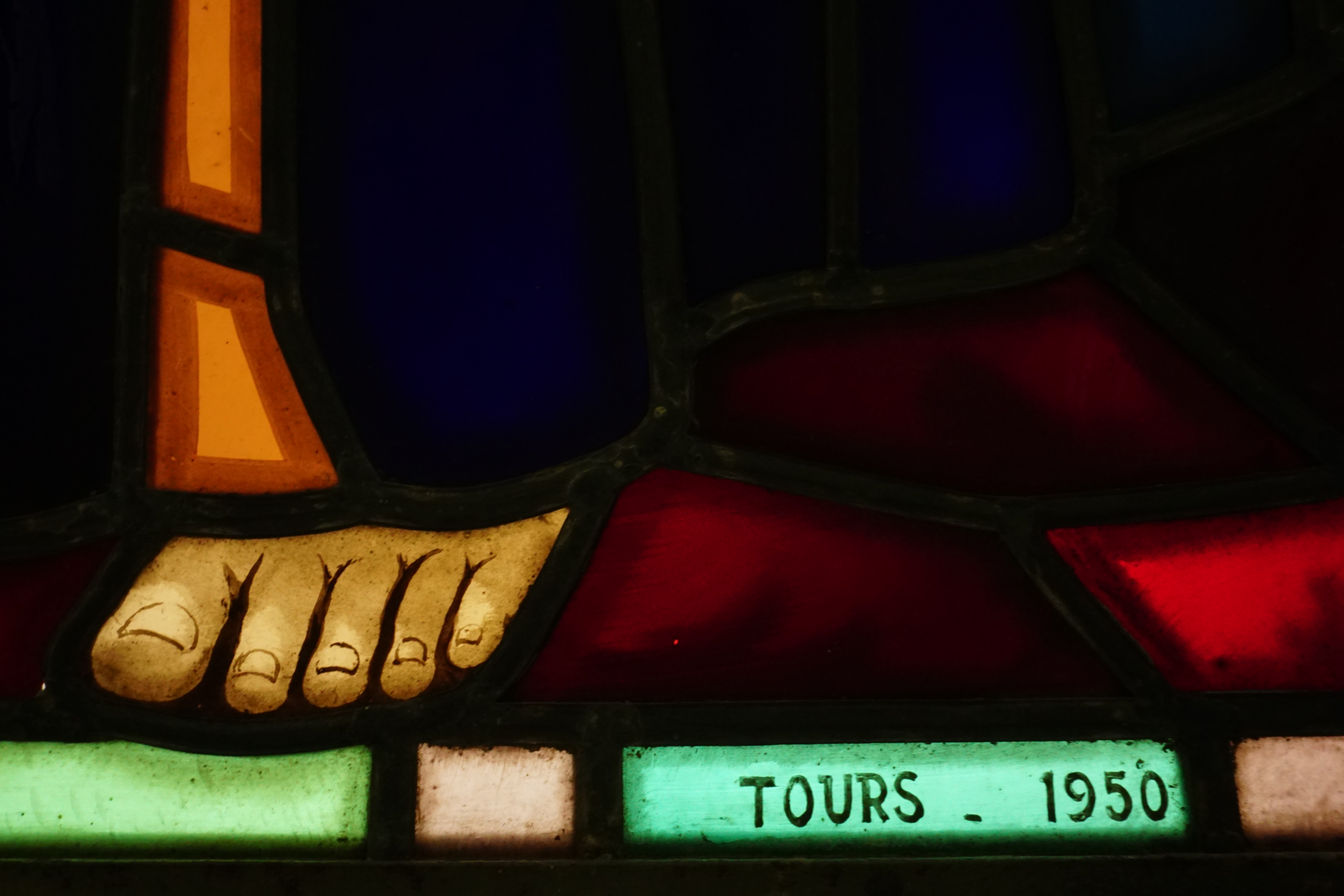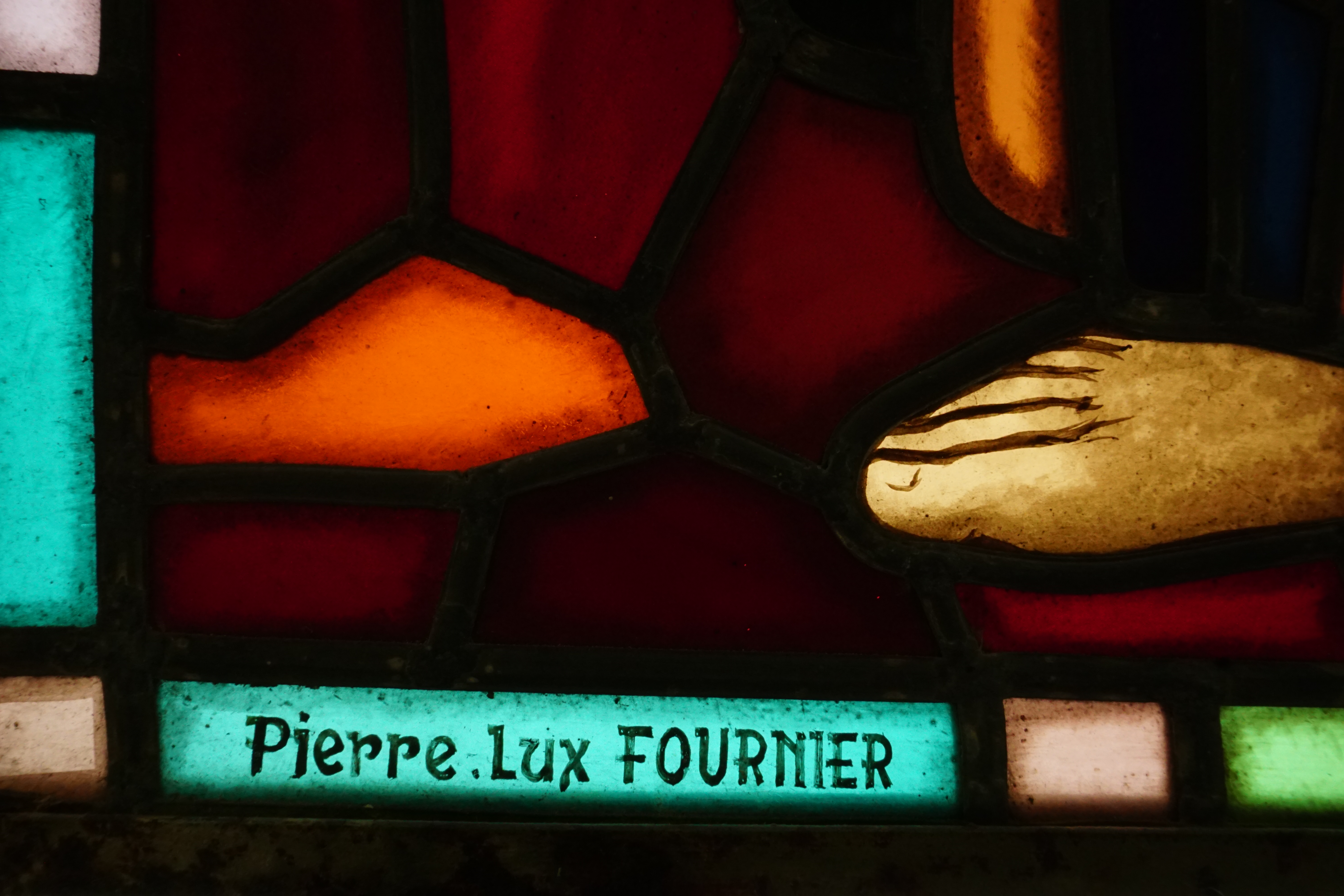 Ce vitrail a été réalisé par Pierre Lux Fournier à Tours en 1950. Pierre Lux Fournier représente la 3ème génération d’une famille de maîtres verriers tourangeaux.