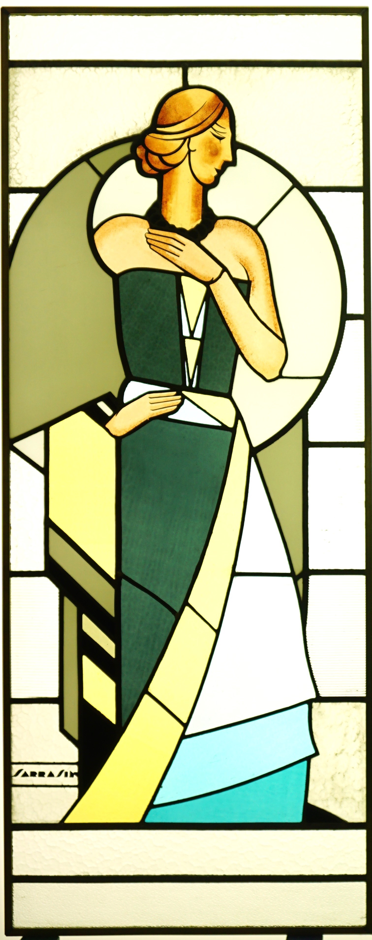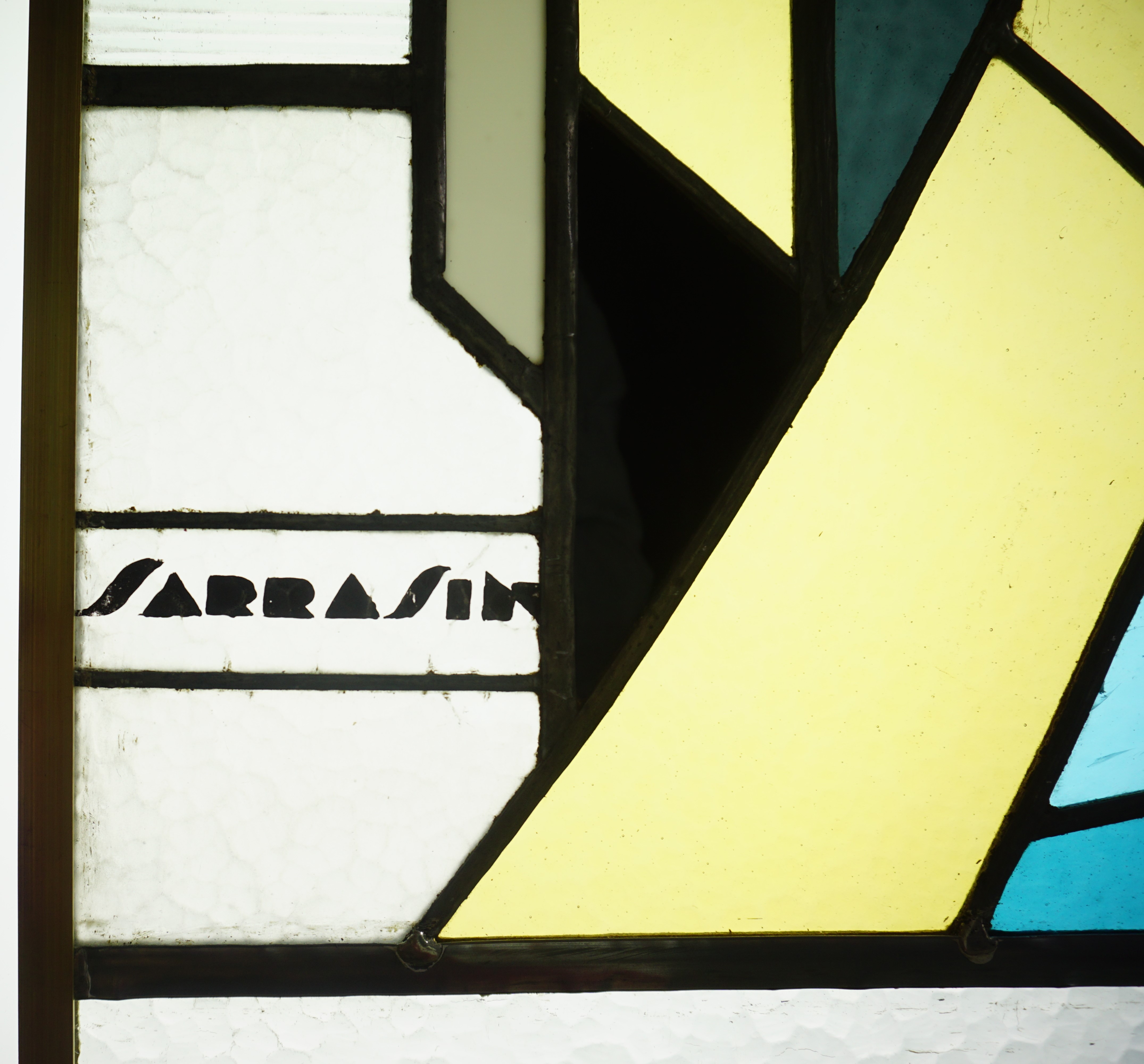 Dans ce vitrail, Sarrasin utilise des verres industriels de textures différentes et un graphisme géométrique, il fige une période riche en innovation artistique et technique : celle de l’Art Déco.
