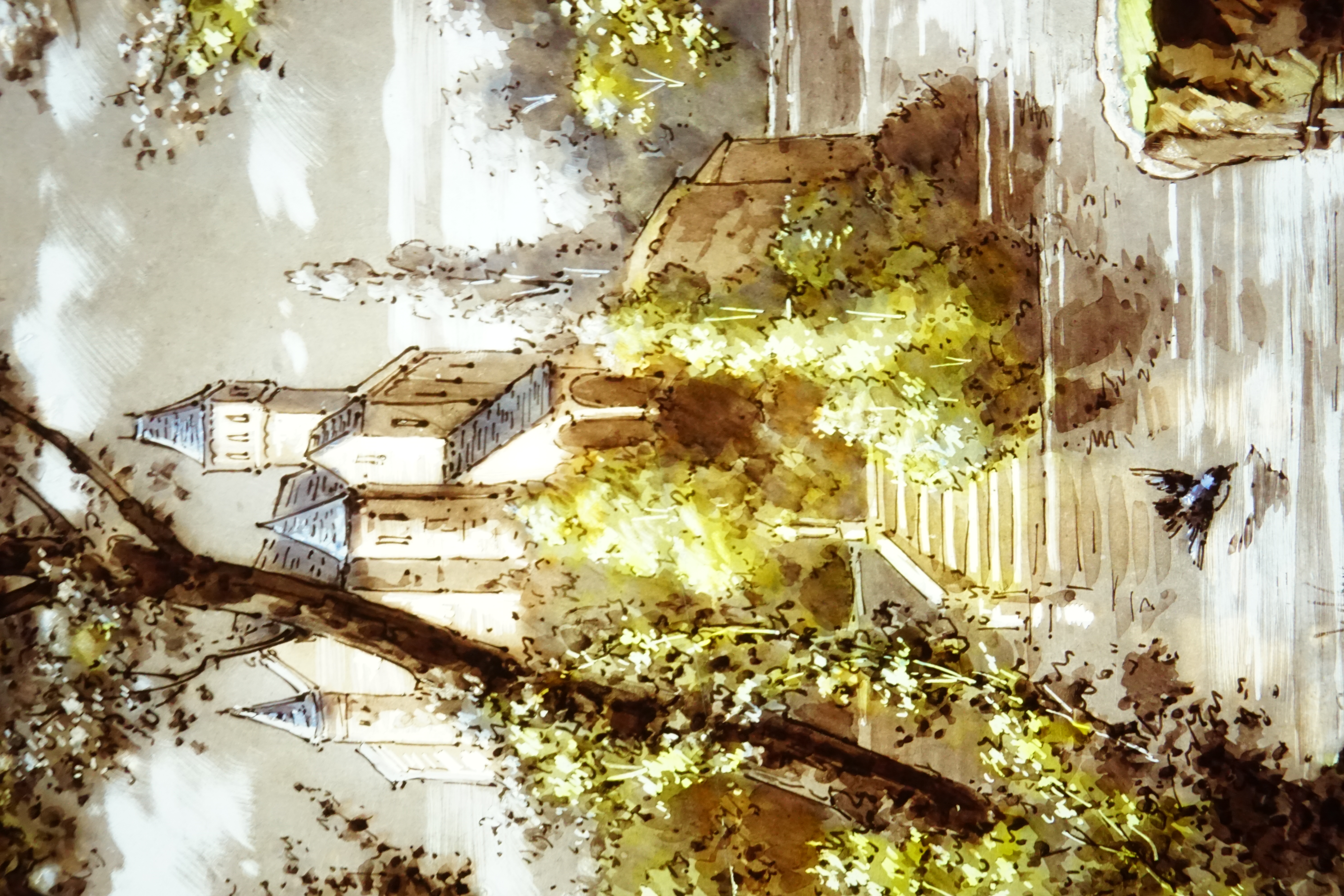 Vitrerie aux médaillons champêtres