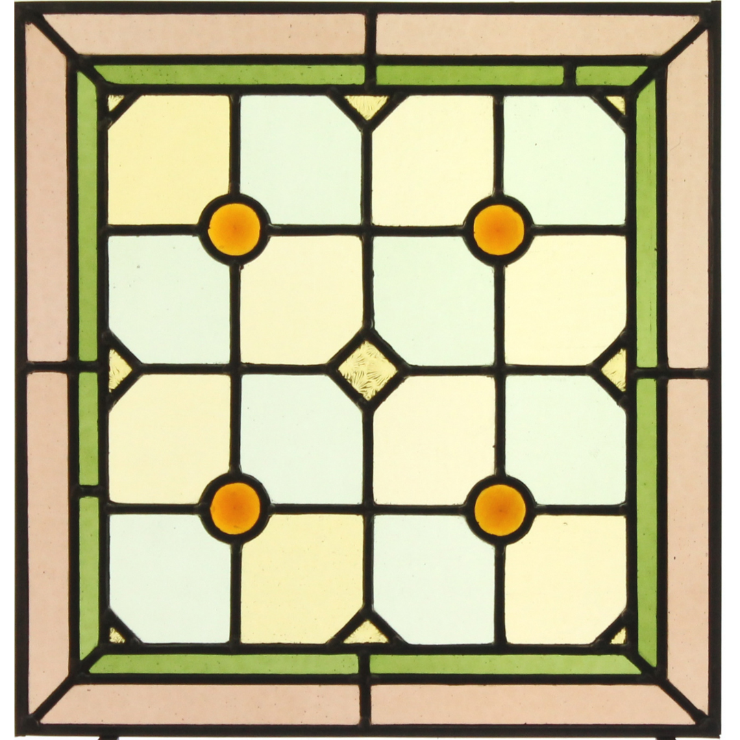 Verres cathédrale de couleur et cabochons. Assemblage et entourage au plomb.
